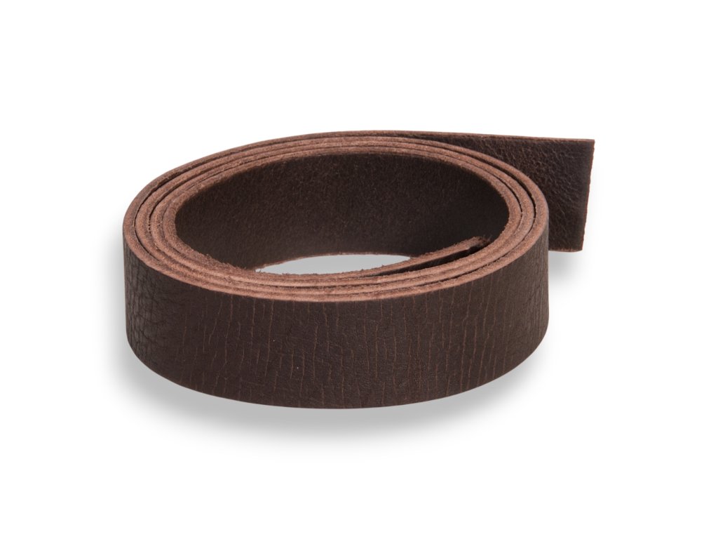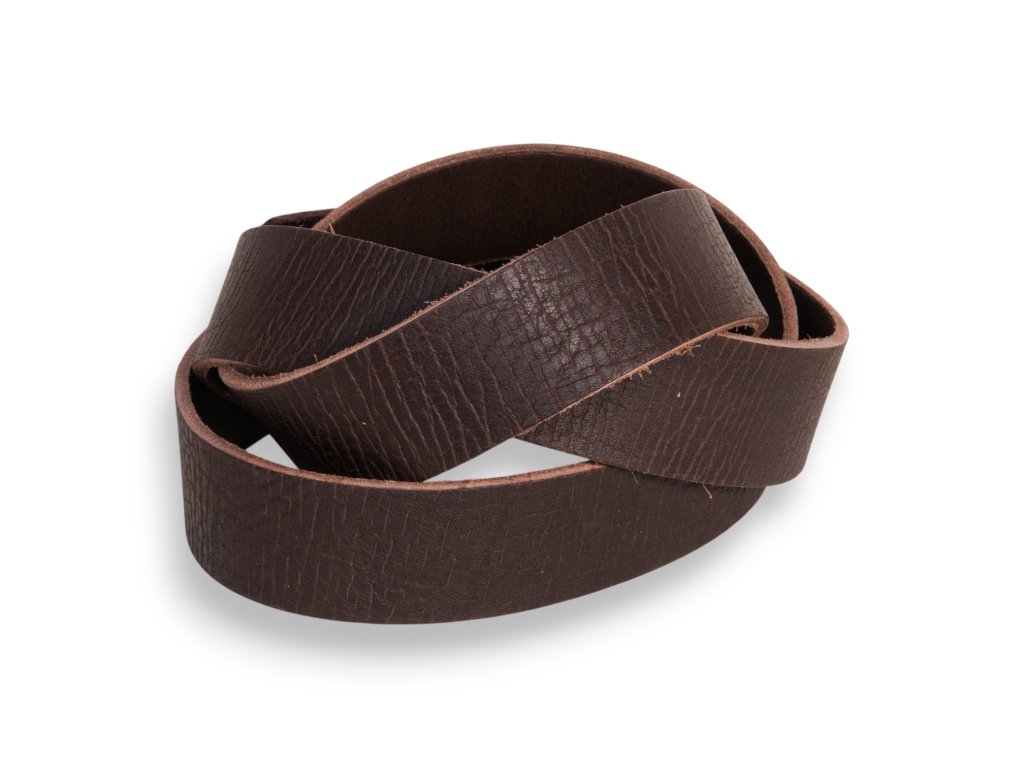 Prémiová hovězí kůže s originální povrchovou ražbou „Bark“, která vzhledem připomíná strukturu kůry stromu nebo hroší kůže. Díky svému rustikálnímu charakteru je ideální pro výrobu masivnějších opasků do jeansů, kde vynikne v kombinaci s výraznou přezkou.
